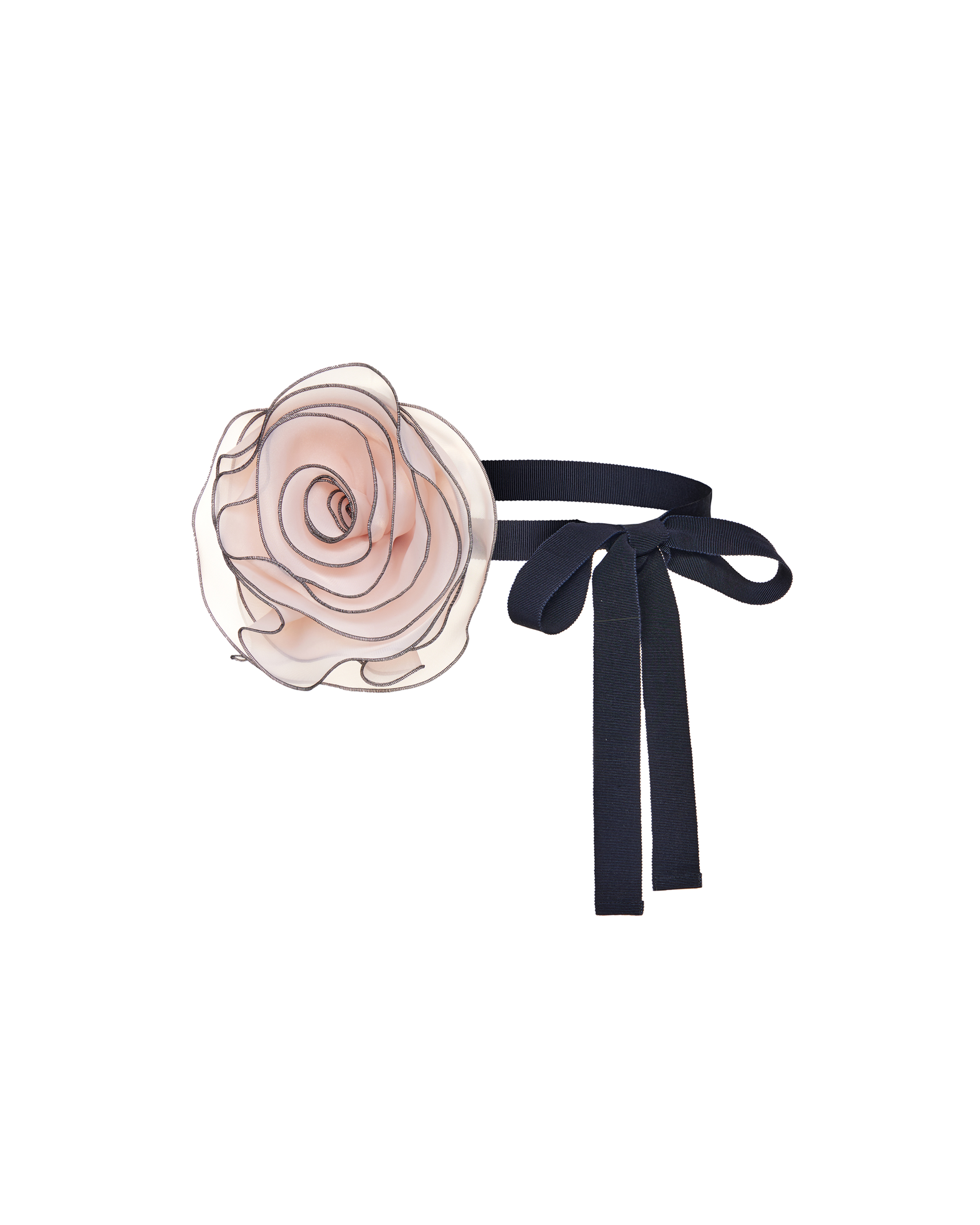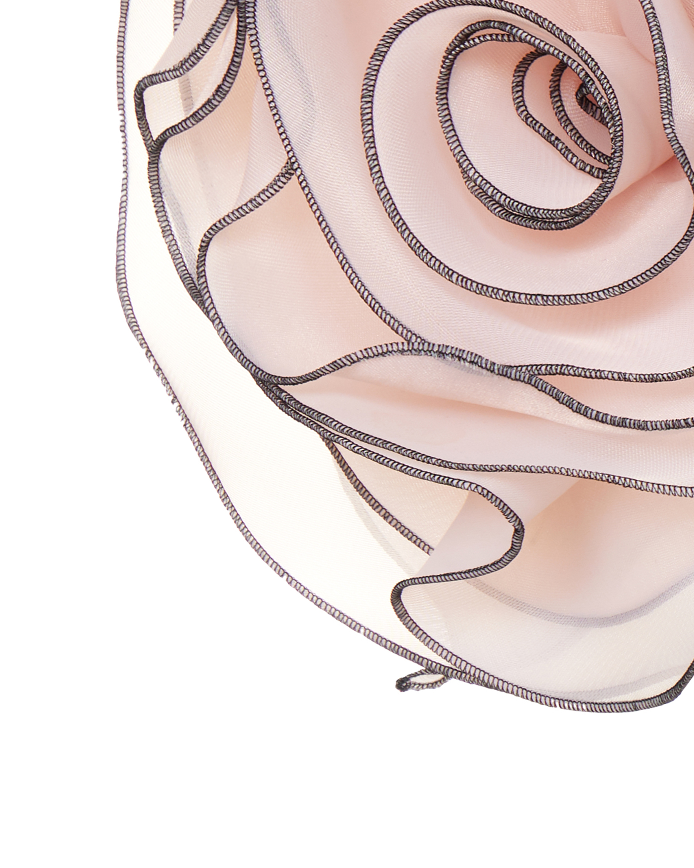 Брошь в виде объемного цветка из органзы с контрастной окантовкой на репсовой ленте. Возможно использовать как чокер, браслет, пояс или в классическом варианте: с помощью основы в виде булавки.