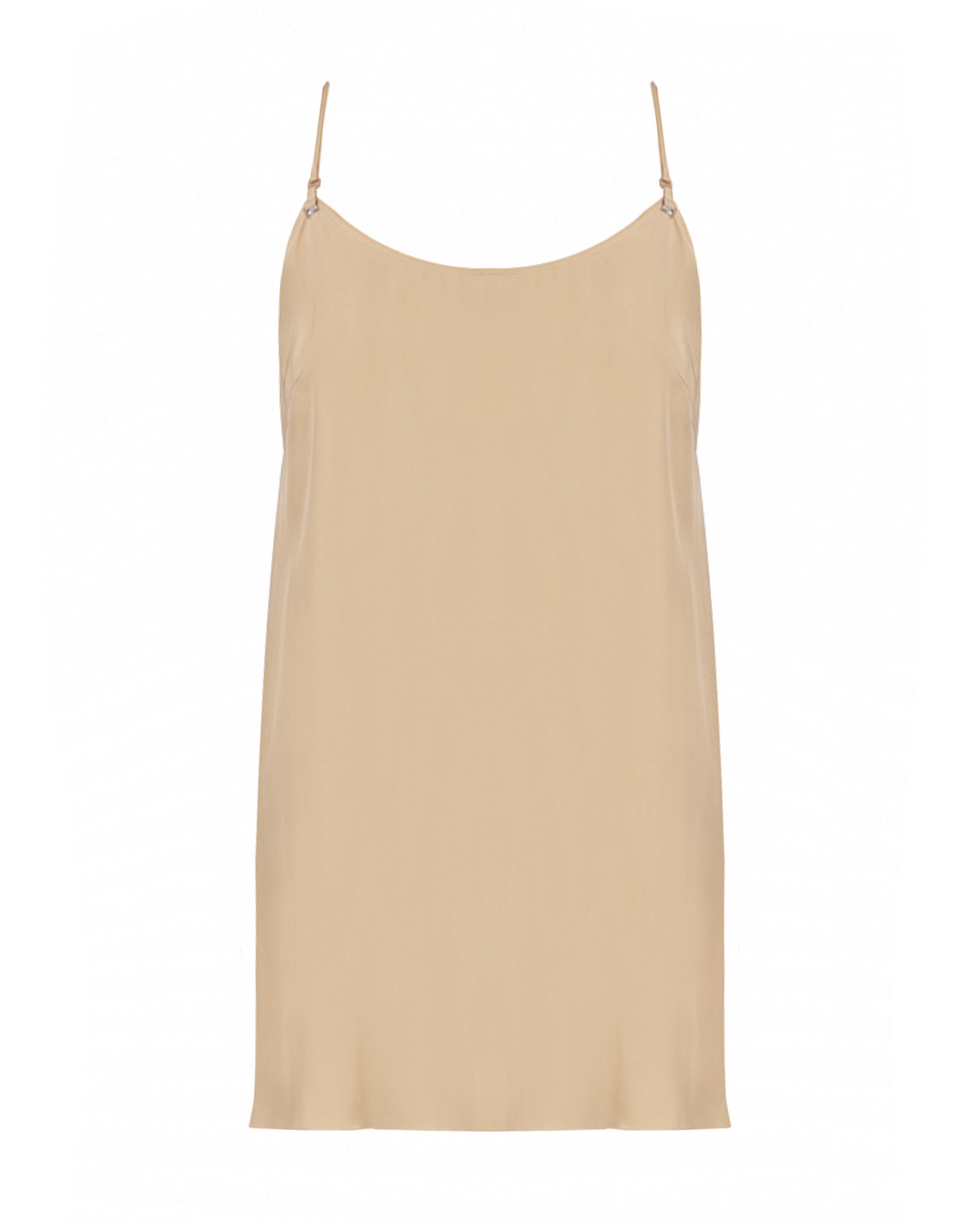 Платье-комбинация из шелка длины мини на регулируемых бретелях.