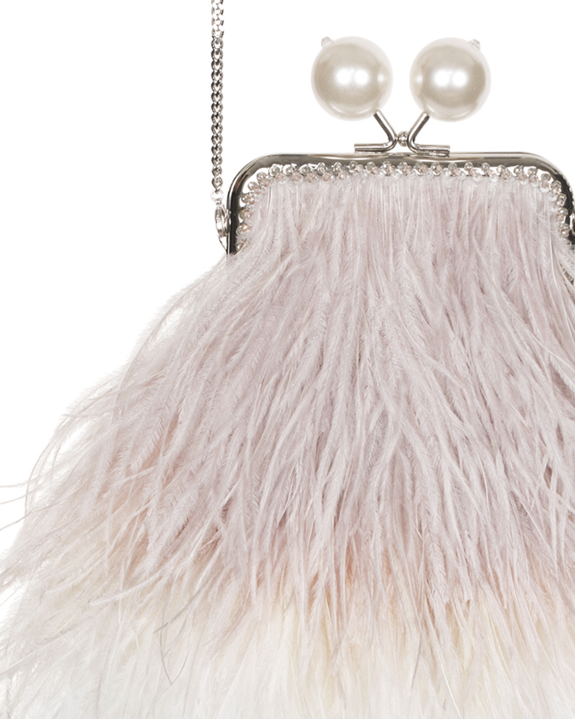 Клатч ручной работы из сложного сочетания разноцветных страусиных перьев, декорированный бусинами по стальному фермуару. Подклад изготовлен из натурального шелка, с кружевом. Клатч со съемной цепочкой, декорированной навесными бусинами ручной работы в цвет застежки.